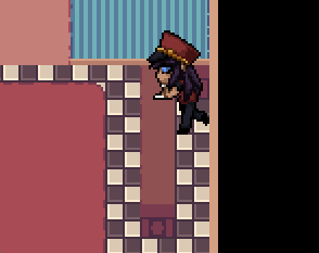 (The above gif is a shot of the new indoor hotel area you can visit in between days. The character spritework is by Squid.)